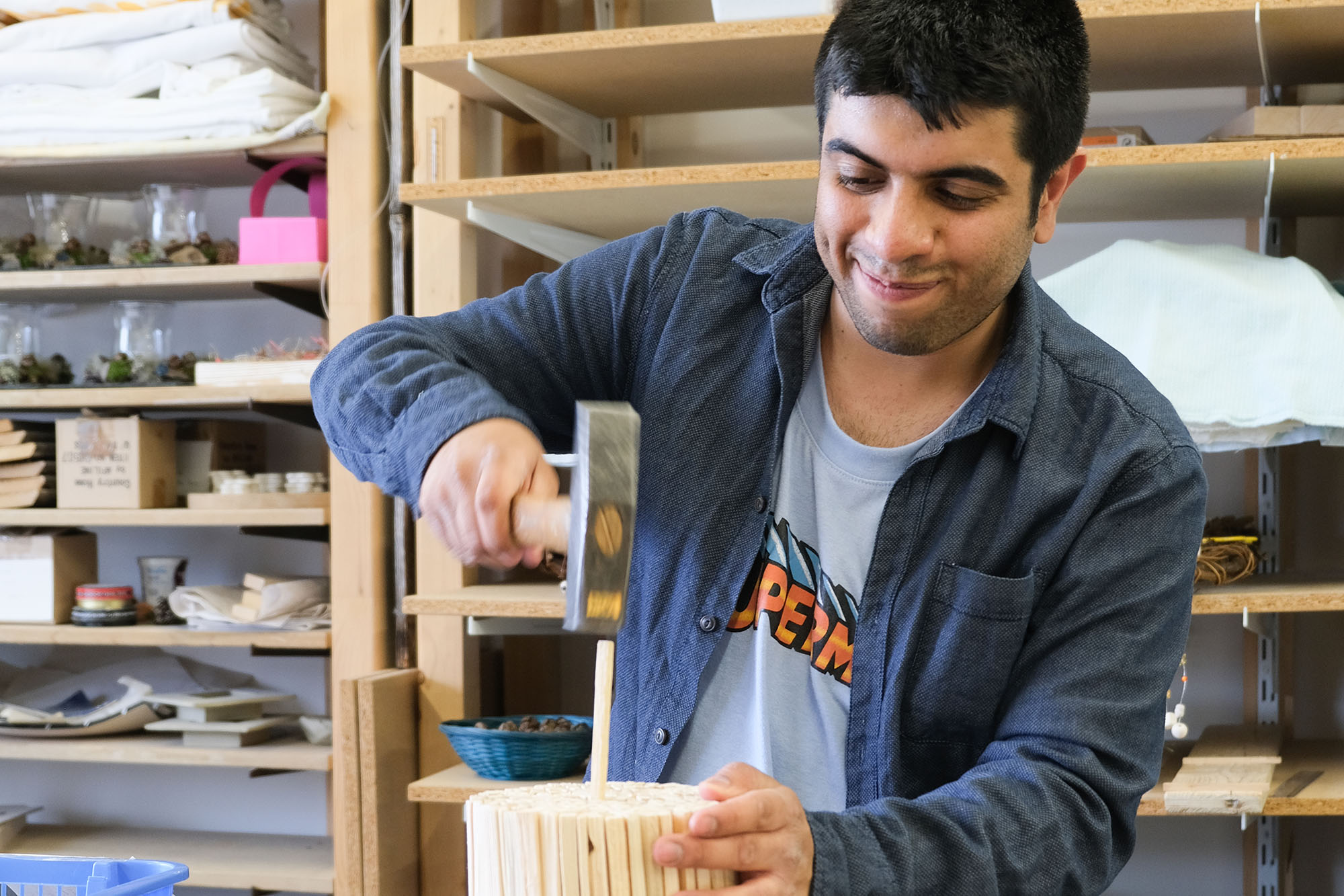 Arbeitsschritte wie z. B. schleifen an Holzartikeln und Blumentieren